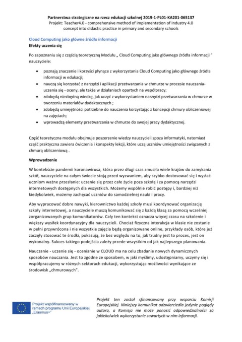 Po zapoznaniu się z częścią teoretyczną Modułu „ Cloud Computing jako głównego źródła informacji ”