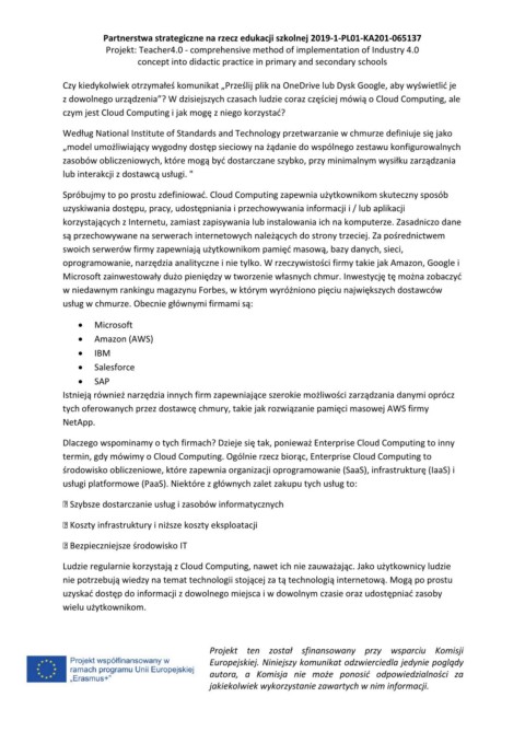 Projekt: Teacher4.0 - comprehensive method of implementation of Industry 4.0