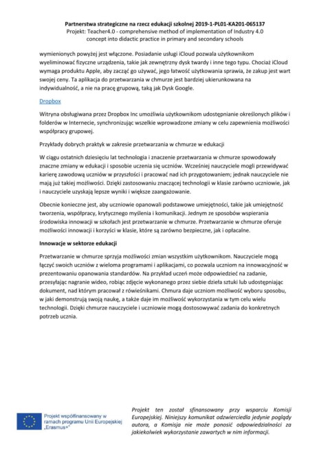 środowiska innowacji w szkołach jest przetwarzanie w chmurze. Przetwarzanie w chmurze oferuje