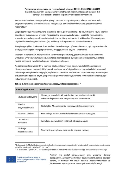 Tabela 2. Wybrane obszary zastosowań rzeczywistości rozszerzonej