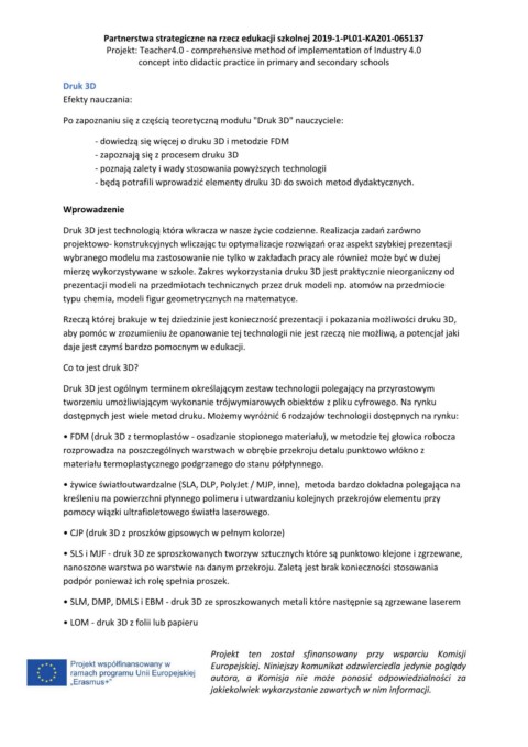 Po zapoznaniu się z częścią teoretyczną modułu "Druk 3D" nauczyciele: