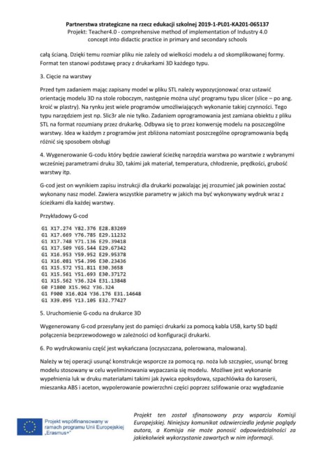 4. Wygenerowanie G-codu który będzie zawierał ścieżkę narzędzia warstwa po warstwie z wybranymi