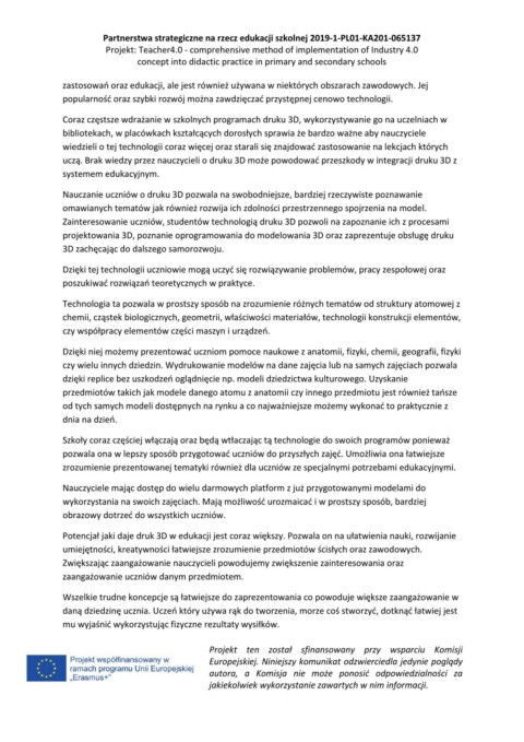 czy wielu innych dziedzin. Wydrukowanie modelów na dane zajęcia lub na samych zajęciach pozwala