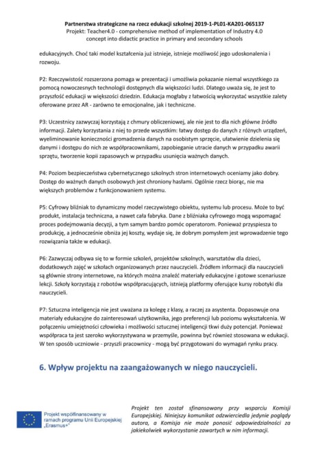 6. Wpływ projektu na zaangażowanych w niego nauczycieli.
