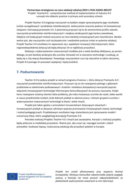 Projekt: Teacher4.0 - comprehensive method of implementation of Industry 4.0