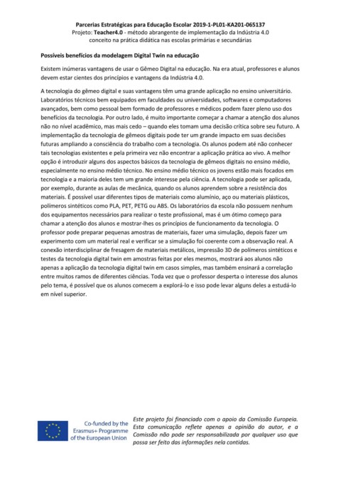 opção é introduzir alguns dos aspectos básicos da tecnologia de gêmeos digitais no ensino médio,