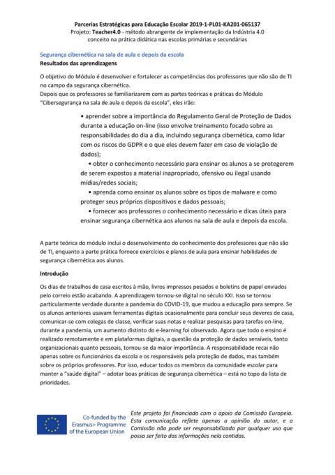 “Cibersegurança na sala de aula e depois da escola”, eles irão: