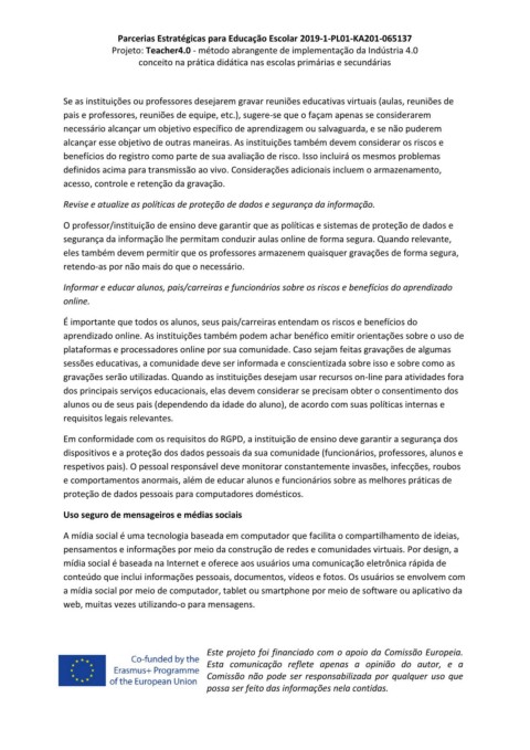 segurança da informação lhe permitam conduzir aulas online de forma segura. Quando relevante,