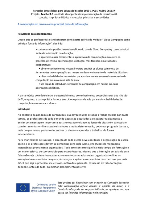 Depois que os professores se familiarizarem com a parte teórica do Módulo “ Cloud Computing como