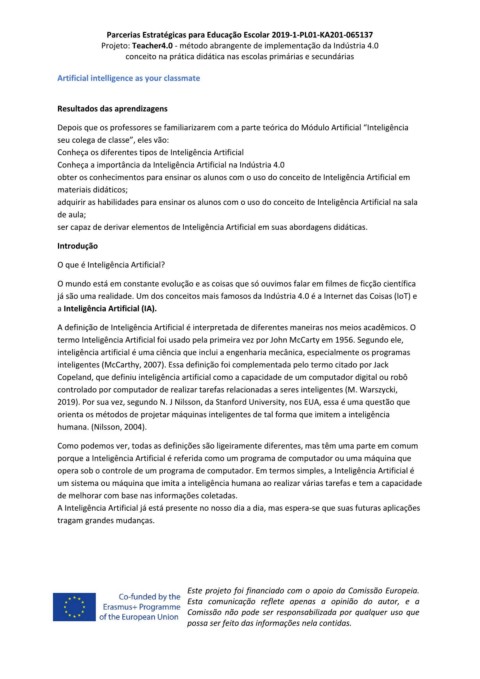Depois que os professores se familiarizarem com a parte teórica do Módulo Artificial “Inteligência
