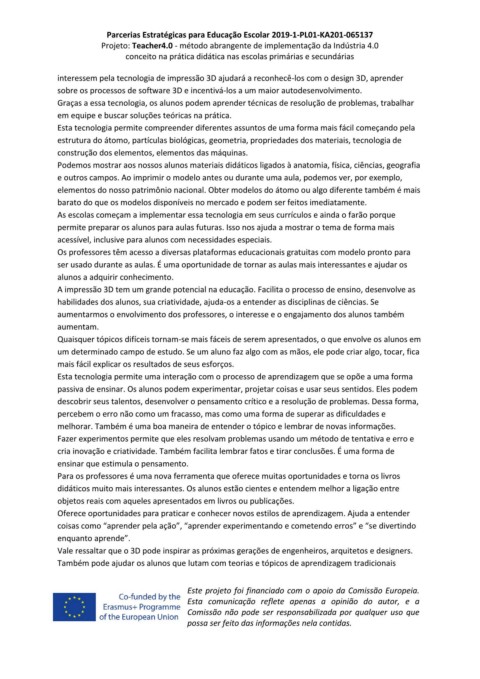 Parcerias Estratégicas para Educação Escolar 2019-1-PL01-KA201-065137